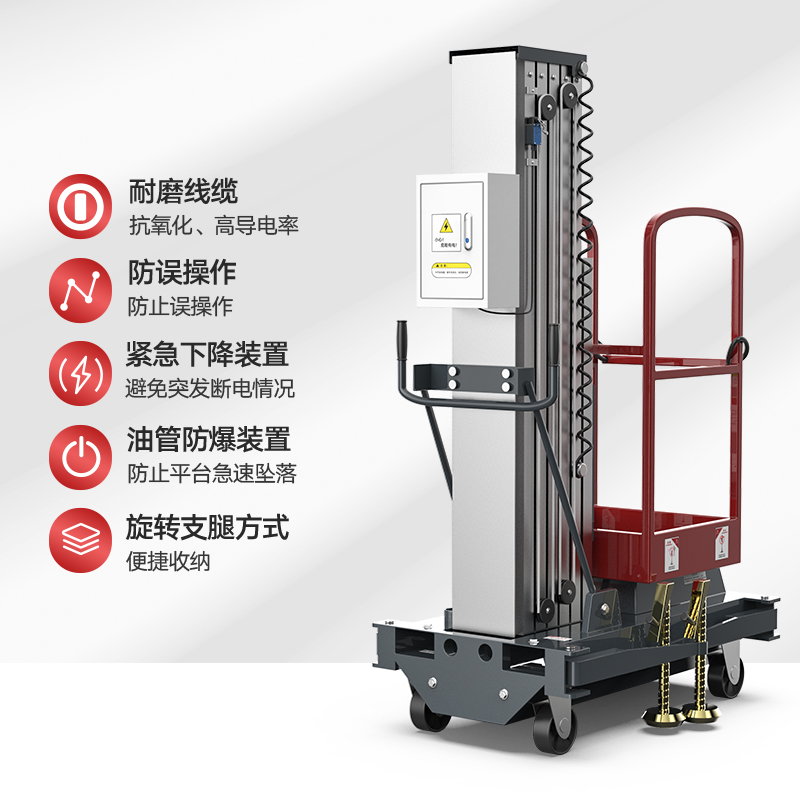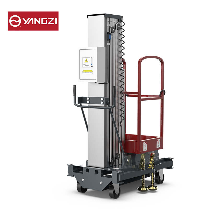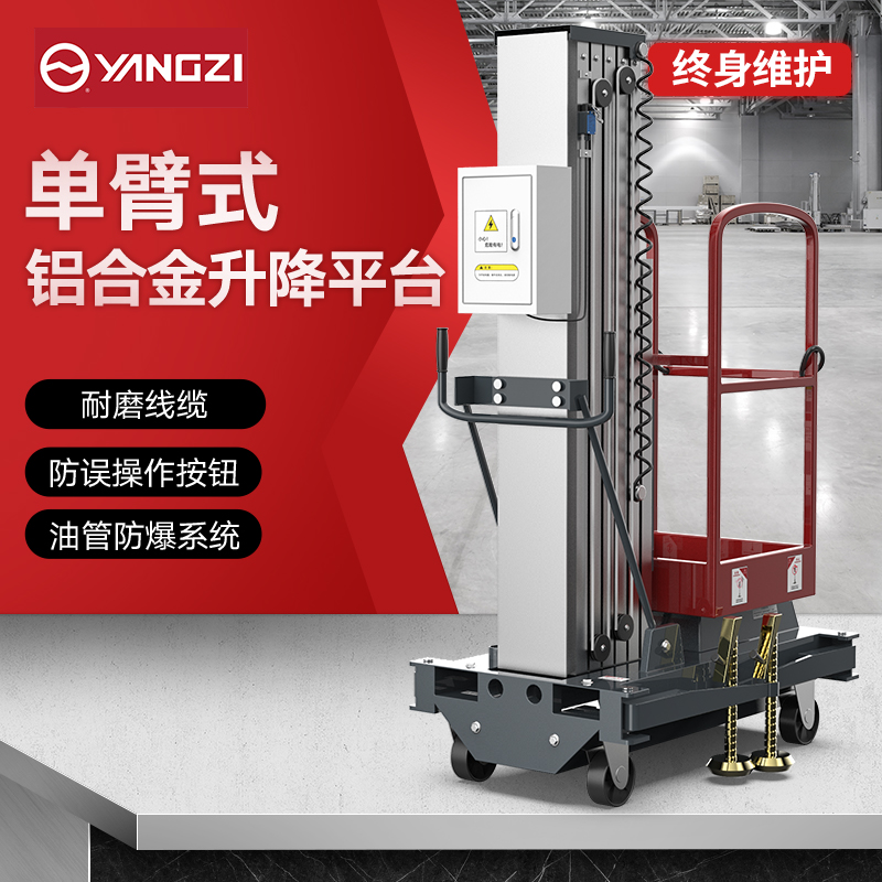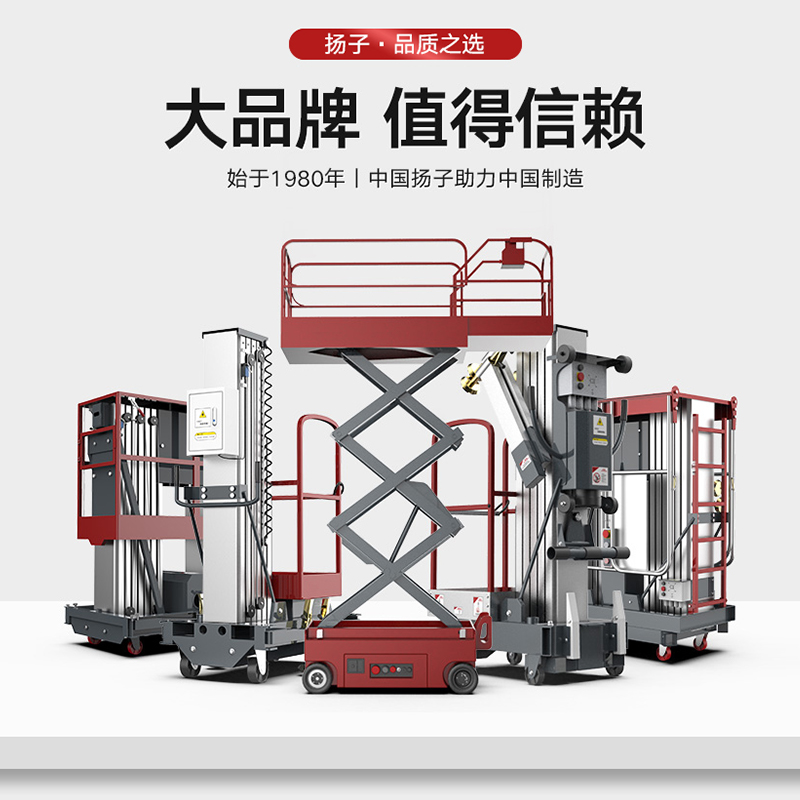 揚子升降平臺:載重量大,穩如磐石,防誤操作按鈕,人性化旋轉支腿,便于收納,機身穩定。還預留了叉車孔便于升降機移動,使用的是進口尼龍滾輪