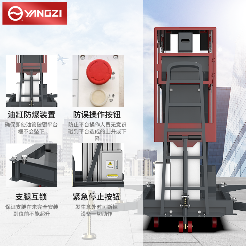 揚(yáng)子升降平臺(tái)升降機(jī)YZ-DS2 -8:空中作業(yè)的保障,提高工作效率,移動(dòng)安全質(zhì)量保障,200kg載重,雙控制平臺(tái)。