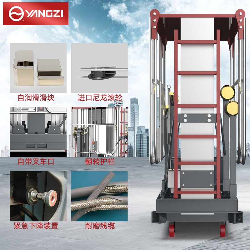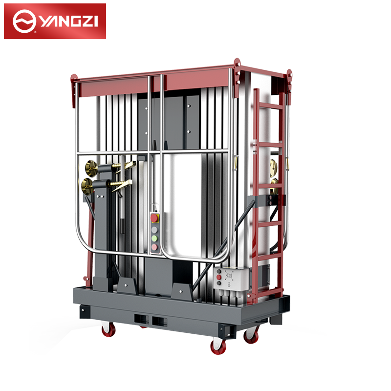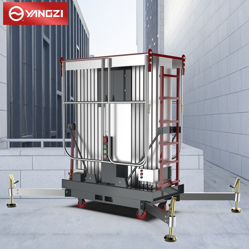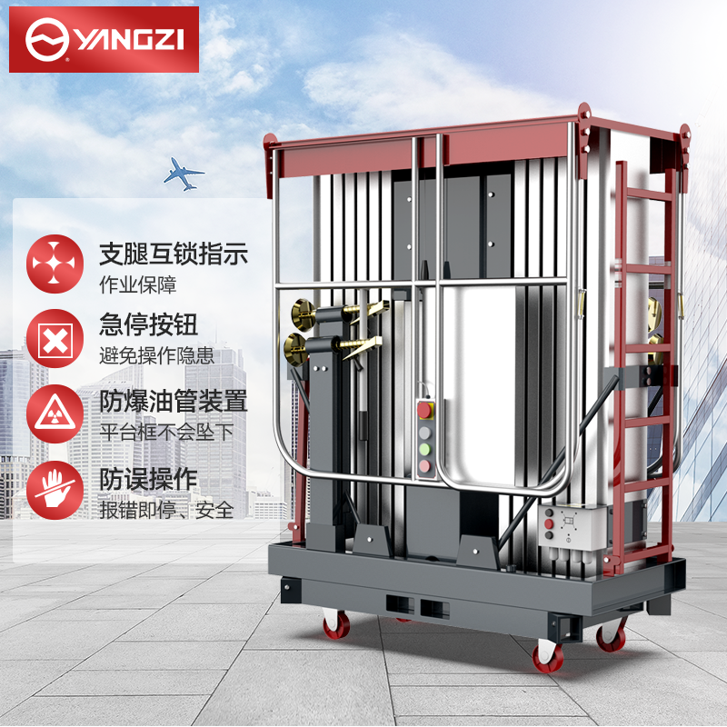 揚子高配雙柱鋁合金升降機YZGS2:擁有雙電源操作平臺,防誤操作按鈕更安全,多場景使用,可以商用維護物業維護工業安裝等。