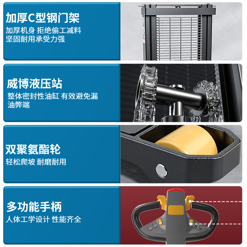 揚子堆高車YZ-CDDB系列的堆高車是全電動的,使用更加方便快捷,且高效采用聚胺酯輪,爬坡更輕松耐磨耐用。揚子廠部直銷,無中間商賺差價更優惠品質更值得信賴。