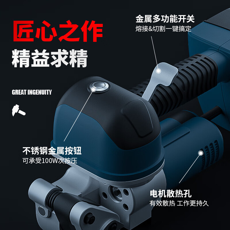 手持電動打包機D19,5500N強勁拉力,銅芯電機低音轉軸,400MA*2雙電池超長續航,充電僅需90分鐘