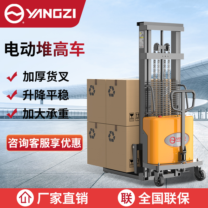 揚子YZ-B系列步行式半電動堆高車:自動液壓叉車,半電動推高車的使用多功能簡潔操作臺,可以有效的防止車子在卸貨當中出現滑動現象。加強油缸安全使用,更能提升效率的使用。